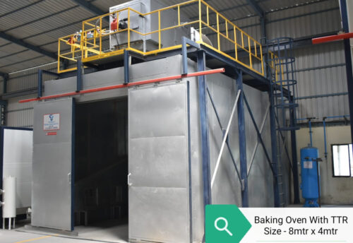 Powder coating ovens are used for curing powder coating finishes on products. The operation of a powder coating oven is a specialised process. A recovery system is attached..